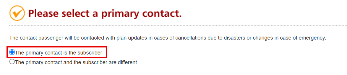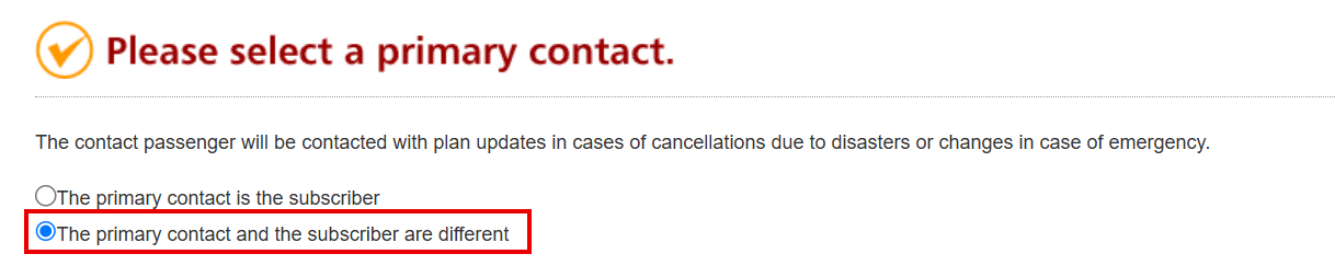 Click “Primary contact and the subscriber are different” if the primary contact person and the subscriber are two different people.